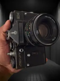 Next in line is the Zenit ET. This is where the aesthetic shifts from elegant showpiece to rugged workhorse. Hailing from the Soviet era, the Zenit ET is famously robust, unapologetically mechanical, and built like a tank. It's a camera that doesn't whisper; it clicks with authority. The Zenit ET was likely my father's companion for more serious photographic pursuits. It's a fully manual camera, demanding a deep understanding of aperture, shutter speed, and focus. There's no auto-anything here – just the photographer's skill and intuition. Holding it, I feel the weight of countless decisions my father must have made through its viewfinder. It taught him patience and precision, forcing him to engage fully with the light and the scene. For me, it represents the foundational learning, the pure, unadulterated craft of photography that strips away all modern conveniences and leaves you with the essence of capturing light.